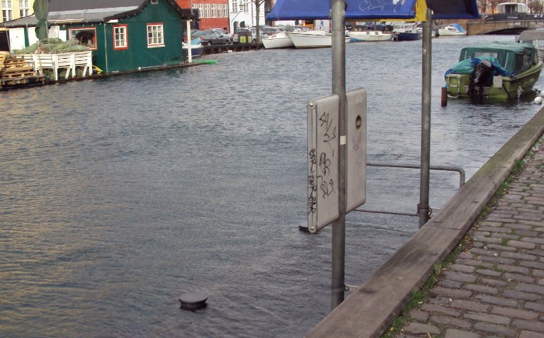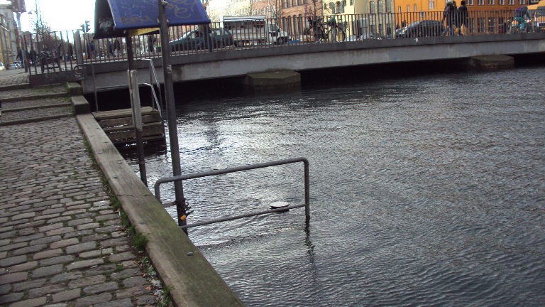 Iflg. Politiet på Twitter Kl. 18.00 den 6.12.2013 er der begyndende vand på kørebanen langs kanalen.