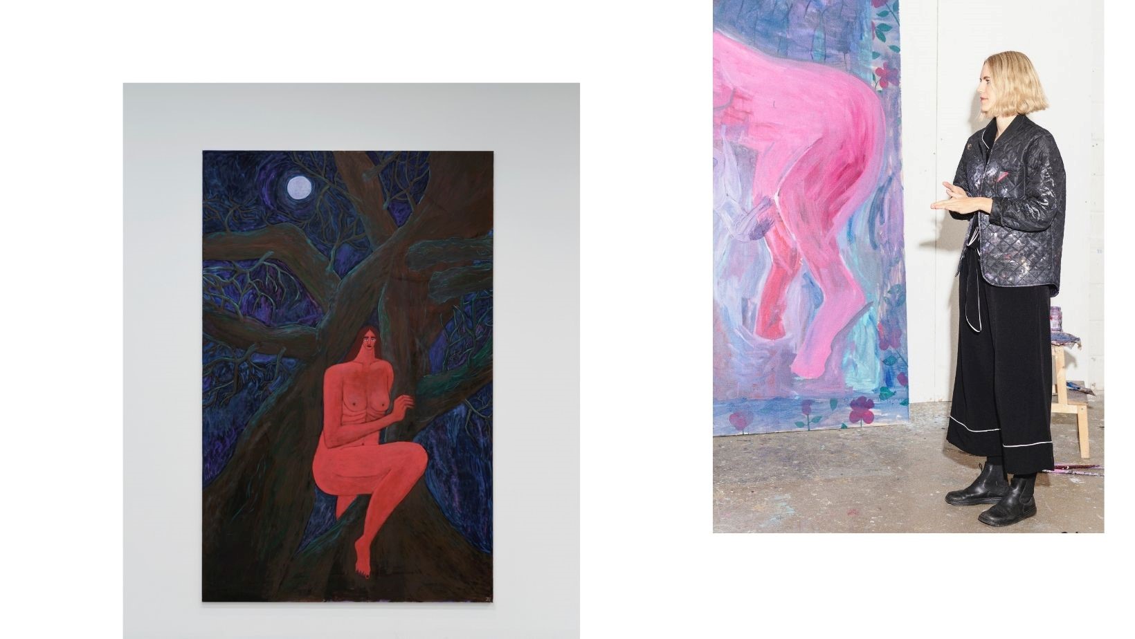 Ida Sønder Thorhauge (f. 1990, DK) bruger visuelle klicheer og spirituelle referencer i hendes malerier for at undersøge, hvordan de har levet op igennem kunsthistorien og hvordan de opfører sig i dag. Gådemættede måner, nøgne kroppe, heste og krogede grene får nyt liv når Thorhauge bøjer deres betydning og lader dem optræde på ny i et billedrum, der bryder klassiske og binære traditioner: Billedernes figurer er androgyne og fremstår på samme tid skrøbelige og robuste. Hestene er ikke bare kampdyr men følsomme væsner.