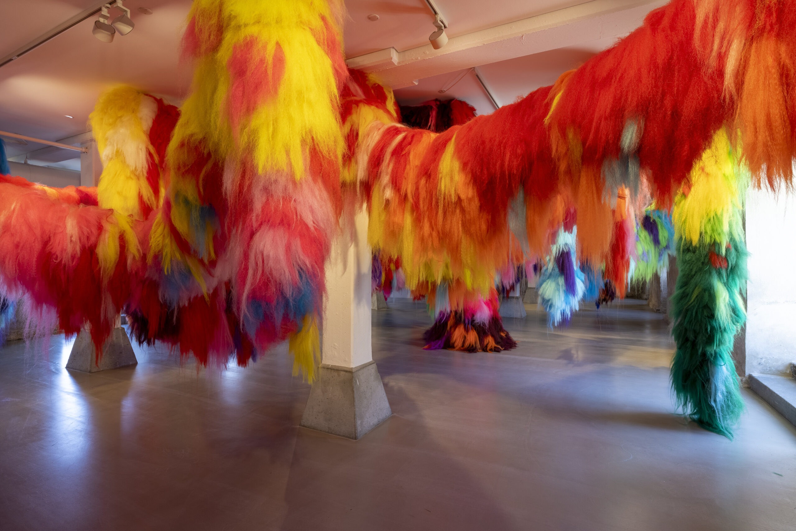 Udstillingen er ét stort værk, en kæmpemæssig installation lavet af kunstigt og meget farvestrålende hår. Man kan tænke på hair extensions, på at lege med My Little Pony, eller se det som et 3-dimensionelt surrealistisk maleri. Værket er åbent.