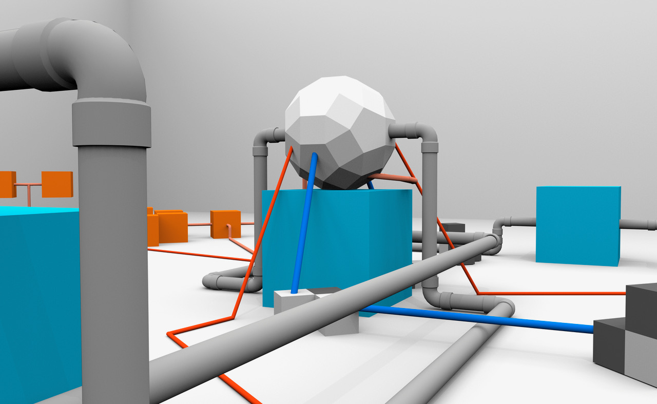 Med udgangspunkt i sin egen hverdag kortlægger Tommy Støckel hjemmets forbindelser af gas, elektricitet, vand, data og audio. Undersøgelserne har udmundet i et stort installatorisk kredsløb af skulpturelle objekter skabt specifikt til O – Overgadens underetage. Iklædt lånte former fra blandt andet geometriske skulpturer, fundne digitale modeller, skulpturelle reminiscenser af velkendt Christianshavner-arkitektur og påført trykketeknologiens klare RGB og CMYK-farver synliggør Støckel de infrastrukturelle systemer, vi lever i. Støckels installation minder os om, hvordan det moderne liv er bygget op omkring komplicerede net af livsnødvendige designs, der konstant behøver opdatering. Samtidigt drømmer Støckel om “superadapteren”; den ultimative transformer, der kan afhjælpe alle frustrationer over, hvordan vores indbyrdes afhængige teknologiske systemer ikke altid er kompatible.