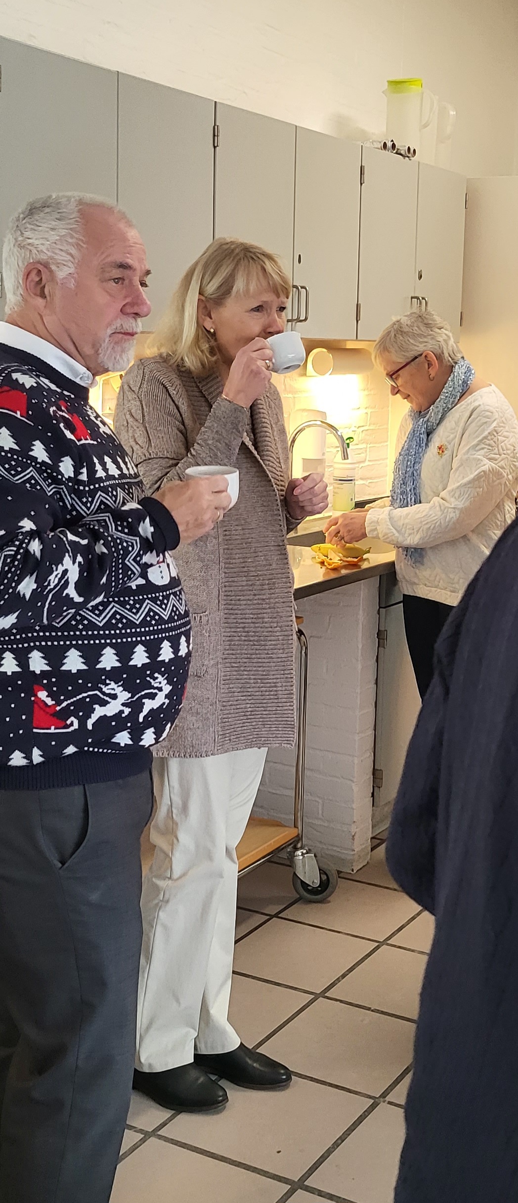 Bordet er dækket, gaverne købt og duften af æbleskiver fylder rummet. Vi kender ikke gæsterne, vi taler ikke deres sprog, men vi håber vi kan give dem et lille pusterum fra krig og flugt. Så det er en flok spændte frivillige der tager en “køkkenkaffe” inden busserne med gæsterne ankommer.