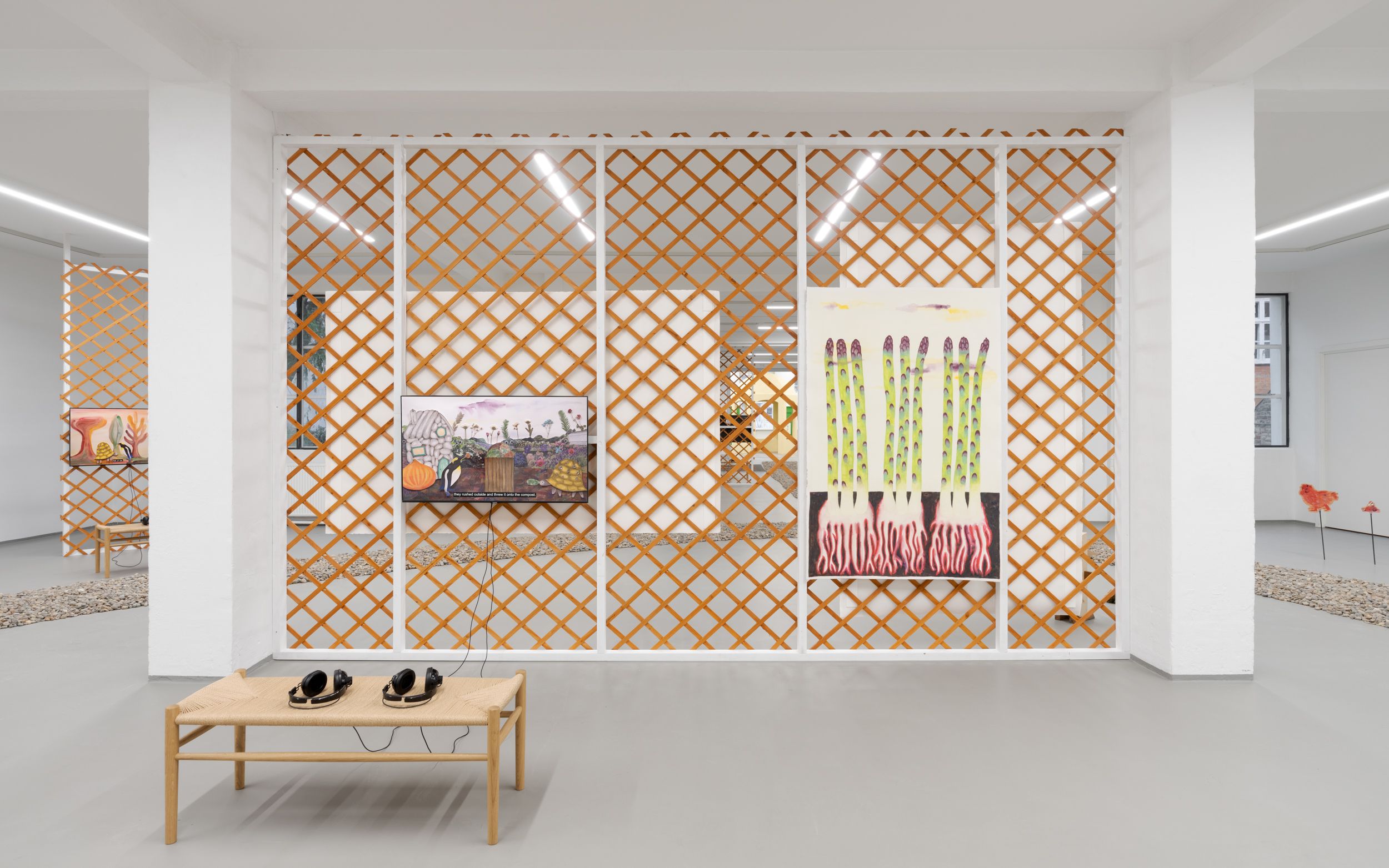 Anna Sofie Mathiasens udstilling _Folly_ på O – Overgadens overetage er udformet som en stor indendørs have af tegnefilmsinspirerede animationsfilm, skulpturer og tegninger fyldt af pingviner, en skildpaddeven med glitrende skjold, frodige blomsterbuske, vildfarne jordskokker og meget andet. Her kan du gå på jagt efter figurer til dine klip og ophæng i et kunstnerens udstillingsunivers og små, korte tegnefilm, der med sine pointer om mental sundhed og terapeutisk havebrug – i finurlig Cirkeline og Pingu-inspirerent stil – taler til både voksne og børn.